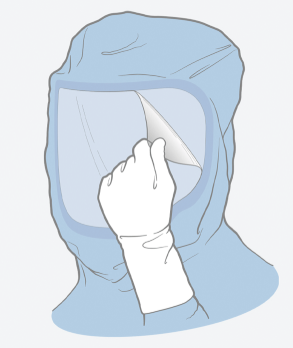 Escafandra estéril desechable de un solo uso para casco de protección personal. Protege y filtra partículas de aire.